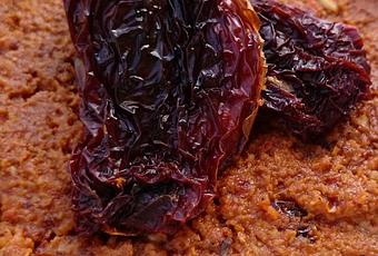 - En el vaso de la batidora trituramos los tomates secos, las almendras, el ajo, el zumo de limón y un poco de agua. Si queda muy seco añadimos más agua.