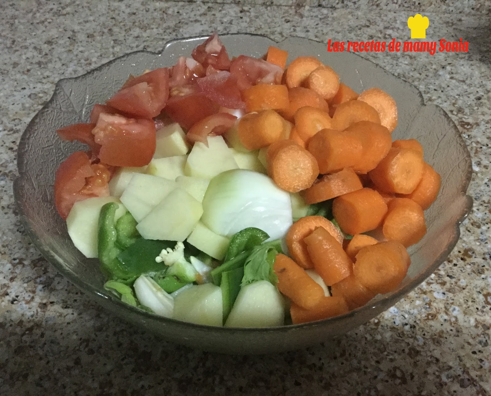 500 gr de verduras variadas, he usado 2 patatas y zanahorias, puedes echar lo que tengas en la nevera.