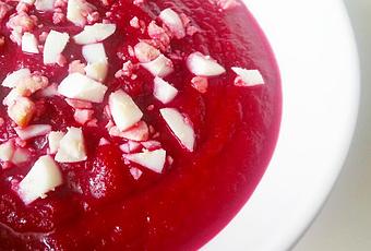 Continuamos con recetas ligeritas, como esta CREMA FRIA DE REMOLACHA Y MANZANA, si, si, manzana, no os asustéis, que lleva manzana y además de ser un plato ligero es sanísimo y está buenísima.
