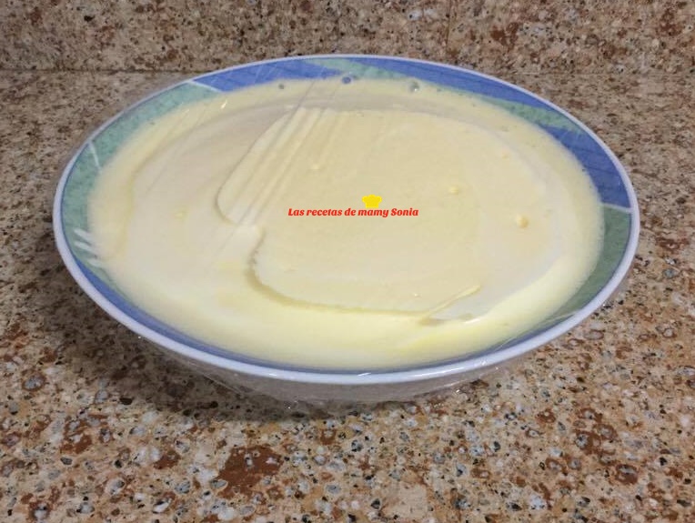 Tapamos con film transparente que toque la crema para que no nos haga costrahasta que se enfrié completamente
