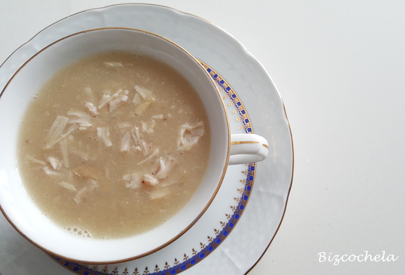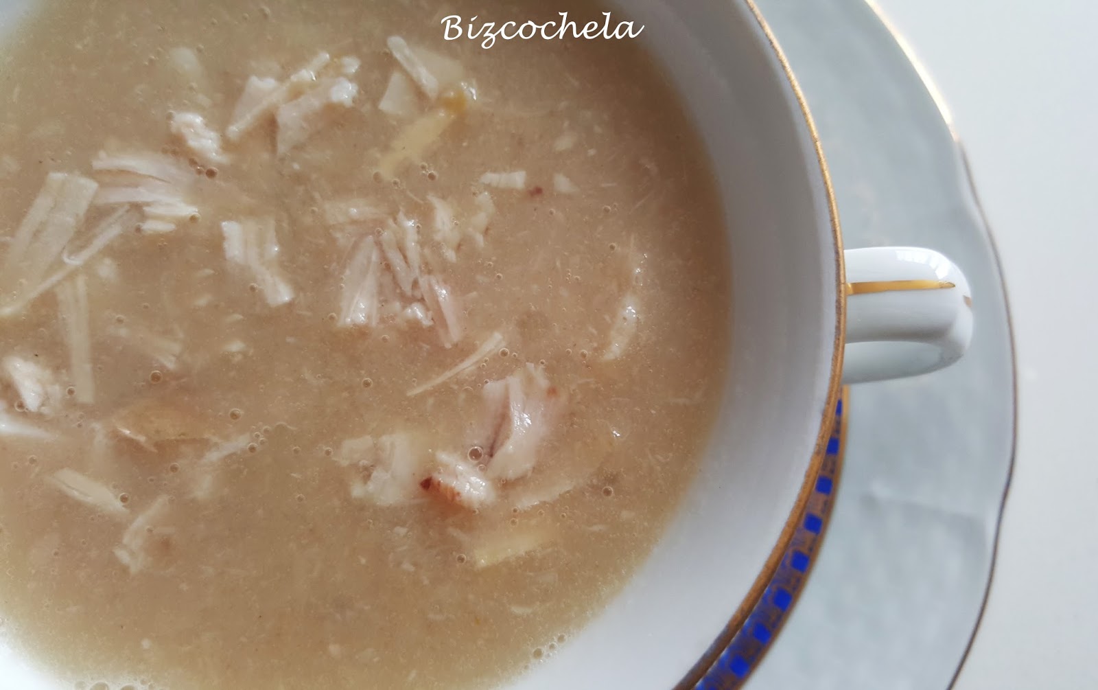 Sólo se necesita caldo de pollo, unas pechugas o el pollo de haber hecho el caldo y un poco de harina, y el resultado es fantástico.