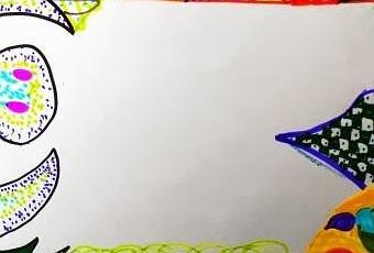 A los demás paralelos de los novenos años, les indiqué las obras  anteriores y optaron por  trabajar con figuras de su preferencia, pero siempre que las formas salgan de los lados de la hoja.A continuación una muestra:
