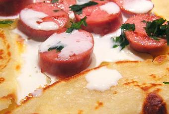 Aunque en realidad debería haberlo llamado "CREPES CON FRANKFURTS" y es que éstas salchichas nada tienen que ver con la salchicha asesina que acabó con la vida de Tony, como lo oís. El mu gilipollas para presumir de "minga" se ató una salchicha a la pierna con un tubo de goma, se fué a la discoteca y durante horas fué el rey presumiendo de paquete, hasta que la presión causada por el tubo le provocó una embolia. Hay que ser tonto.