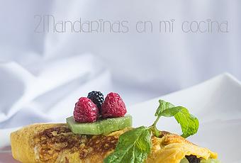 1. Batimos el huevo junto con la miel y hacemos una tortita fina en una sartén antiadherente bien caliente.