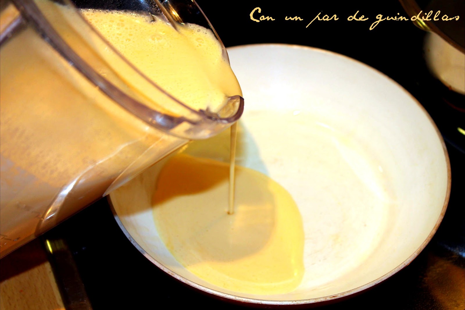 de diámetro). Vertemos tres cucharadas soperas de masa, que todo el fondo quede cubierto pero formando una fina