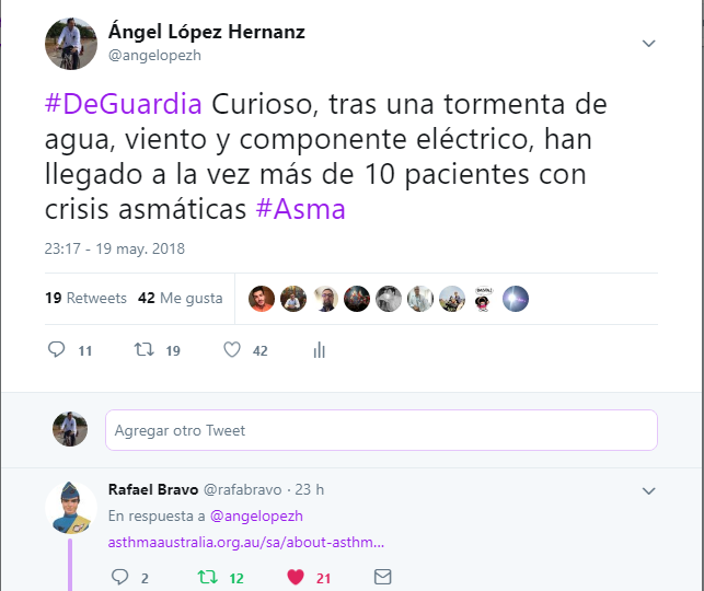 "La principal hipótesis para explicarlo afirma que las tormentas eléctricas pueden acumular cerca del suelo un gran número de las partículas de polen que se encuentran en la atmósfera, y que éstas, al romperse por choque osmótico, liberarían muchas partículas alergénicas de tamaño respirable. Por eso, durante los primeros 20 a 30 minutos de una tormenta eléctrica, las personas que padecen alergia al polen pueden inhalar una cantidad elevada de material alergénico, que les condicionaría reacciones asmáticas, a menudo graves. Incluso se ha constatado que personas sin asma, pero que padecen rinitis por sensibilización a polen, también pueden sufrir un ataque de asma en estas circunstancias.""Un mensaje clave es que todos los sujetos afectados por la alergia al polen deben ser alertados sobre el peligro de estar al aire libre durante una tormenta eléctrica en la temporada de polen, como tales, estos eventos pueden ser una causa importante de exacerbaciones severas de asma. A la luz de estas observaciones, es útil para predecir tormentas eléctricas y así minimizar los eventos relacionados con tormentas eléctricas. Los pacientes con alergia respiratoria inducida por pólenes y mohos necesitan ser informados sobre un enfoque terapéutico correcto del asma bronquial por inhalación, incluido el uso de broncodilatadores y corticosteroides inhalados.""Pero no todas las tormentas eléctricas en las estaciones de polen causan asma con estas características. Las que lo provocan se conoce como tormenta eléctrica con eventos de asma epidémica. Siguen a un tipo particular de tormenta que expone a un gran número de personas a altas concentraciones de pequeñas partículas de alérgenos de granos de polen reventados, en un corto período de tiempo. Siempre que sea posible, los pacientes deben evitar los alérgenos potenciales que flotan en los vientos de la tormenta que se aproxima, y deben permanecer dentro de su casa con las puertas y ventanas cerradas hasta que haya pasado la tormenta." Médico Rural