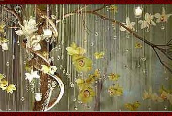 Esta otra idea me ha gustado mucho también. Se trata de poner jarrones con agua y flores y luego la cadena de las piedrecitas