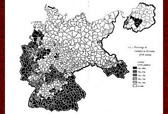 Después de la Reforma luterana, sólo un tercio de los alemanes siguió siendo católico. Hitler no llegó al poder mediante un golpe de Estado, lo hizo con toda legalidad, mediante el democrático método de elecciones libres. No obstante, en ninguna de aquellas elecciones obtuvo mayoría en los Länder católicos, los cuales, obedientes (entonces lo eran...) a las indicaciones de la jerarquía, votaron unidos, como siempre, por su partido, el glorioso Zentrum, que ya había desafiado victoriosamente a Bismarck y que también se opuso a Hitler hasta el último momento.