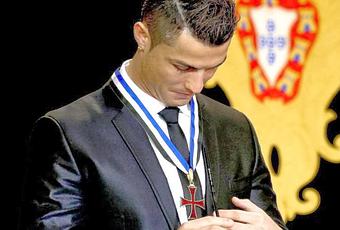 Cristiano Ronaldo ha recibido este lunes la condecoración de Gran Oficial de la Orden del Infante Don Henrique. El acto ha tenido lugar en el palacio presidencial de Belem. El presidente portugués, Anibal Cavaco Silva le impuso la medalla en el Salón de Dasbicas ante la presencia de las más altas autoridades políticas y futbolísticas del país.Además, acompañaron a Cristiano, Emilio Butragueño, Fernando Gomes (presidente de la Federación Portuguesa de Fútbol), Paulo Bento(seleccionador portugués), su descubridor Aurelio Pereira y su agente Jorge Mendes, entre otros.