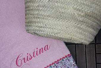 Seguimos en modo comunión, Cristina es una pequeña de un pueblo de Sevilla que el próximo Sábado 22 recibirá su Primera Comunión y uno de sus regalitos será este bonito conjunto de capazo y toalla para la playa y la piscina.