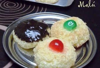 Esta receta la aprendí de mi madre. Ella hace estas bolitas de coco desde siempre. En muchos sitios he visto que las llaman Coquitos; nosotros en valenciano las llamamos "Cristinetes de coco". A mis hermanos y a mi nos gustan muchísimo y ahora a nuestros hijo también e incluso a nuestras parejas. Así que es un dulce bien recibido en la familia, a gusto de todos. Además decorado con las guindas rojas y verdes queda muy alegre, por eso lo he elegido para participar en el concurso de Comer especial . Rous está de celebración por los 6 meses de blog. Es muy apropiado también para una mesa de dulces navideños. Espero que os guste, y que las hagáis en casa. Son muy fáciles de preparar y muy resultonas.