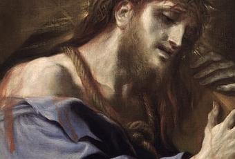 En un poderoso primer plano aparece Cristo doliente portando la cruz, con una soga al cuello. Giordano otorga a la obra un tono patético, a lo que colabora su dramática monocromía rota solo por las carnaciones, el halo de divinidad que irradia de su cabeza y la sangre que corre por su cuerpo. El rostro, sereno, y las huesudas manos refuerzan el dolor e invitan a la meditación sobre la pasión de Cristo.