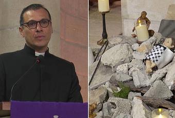 La Navidad conmemora el nacimiento de Jesús de Nazaret, ocurrido hace más de 2.000 años en la ciudad de Belén, Palestina, en lo que hoy es el territorio de Cisjordania, ocupado por Israel. La celebración es a la vez solemne y festiva. La Basílica de la Natividad se erige en el sitio que se considera que fue el lugar de nacimiento de Jesús, un establo donde se cree que el niño recién nacido fue colocado en un pesebre, tal como se representa esa escena en los belenes de todo el mundo. “Cristo entre los escombros” es el nombre que se le dio a uno de esos pesebres, ubicado dentro de la Iglesia Evangélica Luterana de la Natividad de Belén, a pocos pasos de la antigua calle empedrada donde se cree que nació Jesús. En ese particular pesebre, el Niño Jesús, arropado con una kefia —el pañuelo tradicional palestino— reposa sobre una pila de escombros, como símbolo del incesante ataque de Israel contra la población de Gaza. En vísperas de la navidad de 2023, el pastor de esa iglesia, el reverendo Isaac Munther, pronunció un sermón llamado “Cristo entre los escombros”, que se viralizó en internet. A casi 450 días del inicio de los bombardeos israelíes contra la Franja de Gaza, en los que han muerto más de 45.000 palestinos, el sermón navideño que Munther pronunció este año ante los feligreses se tituló “Cristo sigue entre los escombros”.
