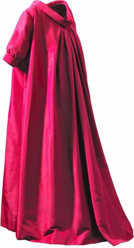 Déshabillé en gros de Nápoles de color fucsia, 1955. Perteneció a Mrs. Mona Bismarck.El 1937 presenta su primera colección en París.