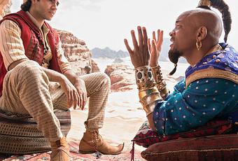 Ésto, sumado a la puesta en escena, la coreografía y el vestuario al mejor estilo Bollywood, hacen de los momentos musicales de Aladdín un festival de colores vibrantes que es verdaderamente impactante.Uno de los puntos más cuestionados de Aladdín y que recibió críticas negativas incluso antes de haber sido estrenada fue sin dudas, el Genio. Pero contra todo pronóstico y superando ampliamente las expectativas, resultó ser lo mejor de la película. Interpretado por Will Smith (Men in Black), obviamente no se trata del mismo Genio que hizo Robin Williams (porque intentar imitarlo habría sido un grave error), pero la verdad es que como "comic relief" está bien logrado.
