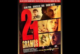 Resulta curioso que casi todo el mundo vincule el título y el contenido de esta película al tema de la droga. Su título, un director conocido por contar historias violentas y llenas de potencia visual, un reparto en el que destacan Sean Penn y Benicio del Toro, cuyos currículos están plagados de thrillers que versan sobre bandas de criminales y narcotraficantes, en fin, todos estos elementos nos remiten a pensar que estamos hablando de 21 gramos de cocaína. Nada más lejos de la realidad, aunque el polvo blanco esté presente de manera indirecta en la historia. El trasfondo de esos 21 gramos es mucho menos prosaico y sí un tanto filosófico, se podría decir que incluso raya lo metafísico. Y cuando recorremos la fina línea que separa lo profundo de lo manido, lo emocionante de lo pedante y adoctrinante, podemos caer con facilidad a cualquiera de los dos lados. En este caso, y hablo del monólogo final de la película, nos movemos en el terreno poco original y trillado de lo ligeramente pedante, que trata de emocionar. A lo que íbamos, 21 gramos. La explicación que hay detrás del título resulta más interesante que la excusa argumental que sirve para ilustrarla. En el instante de la muerte el cuerpo de una persona pesa exactamente 21 gramos menos que cuando esa persona estaba viva. Ese es, por decirlo de algún modo, el peso del alma.