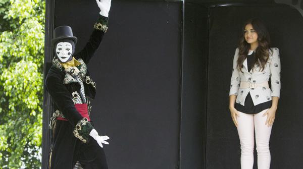 Una de las pistas que envió -A a las muchachas las hizo viajar a Ravenswood, más concretamente a un siniestro espectáculo de magia donde el presentador se empeñó en que Aria se metiera en una de esas cajas tan creepy en las que entras, desapareces y vuelves a aparecer. Momento tenso al canto. Cuando todos estábamos nerviosos y Spencer le susurraba a Hanna "debería de volver a aparecer ahora" y ya nos temíamos lo peor, de repente ojitos de sapo finalmente regresó y no hubo ningún drama para ella... lo hubo para Emily, a la que secuestraron mientras las demás veían el espectáculo. ¿Y a dónde fue a parar la chiquilla? A un aserradero.