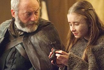 Llegando a uno de los dos momentos culmen del capítulo, hemos tenido la dolorosísima escena de Shireen Baratheon. Tras toda esta temporada enseñándonos a un Stannis Baratheon totalmente enfrentado interiormente entre lo que le dictaba el corazón y lo que le dictaba la cabeza, ha tomado una resolución. Después de su más tierna escena. De su momento de debilidad de corazón cuando hace mostrar el amor por su hija. De saber que ella confía en él plenamente y que no sería capaz de hacerle ningún tipo de mal. Después de todo esto, se ha dejado llevar por los engaños de Melisandre de Asshai. La pobre dulce, inocente y buena de Shireen, que nada tiene que ver realmente con las crueldades de su padre, ha recibido la mayor y peor de todas de lleno en su cara.Pero lo más impactante no es sólo esto, sino también la hora de la verdad. Cuando entre gritos de dolor llama primero a su padre y éste impertérrito como una piedra no se mueve, empieza a llamar a su madre. Algo se despierta dentro de Selyse Florent. Algo que había perdido debido a su obsesión con el Dios de la Luz y todas las comeduras de cabeza que se había traído consigo la Sacerdotisa Roja. Algo que al haberlo perdido había hecho que tratara a su hija con todo el desprecio. Y ese algo es el amor maternal. El amor infinito de una madre. Y es cuando lo recupera cuando es demasiado tarde para intervenir en el drama que está pasando. Cuando no puede aliviar el dolor de su hija. Cuando no puede salvar su vida. Es entonces cuando, rota, cae al suelo a llorar y a lamentar todo lo que ha hecho.