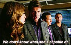 Definitivamente, los capítulos más divertidos son los de casos raros, como es el caso de éste, el capítulo 120 de Castle. Ya era lo que le faltaba a Castle para volverse totalmente loco y acabar apelando a Stephen King por el parecido de una joven sospechosa con el personaje del famoso escritor: Carrie, por sus poderes telequinéticos. Esta temporada está teniendo momentazos y, sin duda, este capítulo se lleva unos cuantos más.Castle y Beckett vuelven al instituto para investigar el asesinato de una chica “popular” en su habitación que ha sido presenciado por videollamada por sus amigas repipis. Pero las cosas no han sido tan sencillas y no se trata de un simple asesinato, sino que hay hechos difíciles de explicar en todo lo acontecido, cosa que acaba sacando de sus casillas a Beckett, aunque todos sabemos que ella también disfruta estos casos como una niña y hasta incita a Castle a protegerla cuando le dice que la pobre niña es peligrosa (ver gifs).