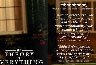 Hace un par de días llegaba a pantallas españolas The Theory of Everything (La Teoría del todo) biopic de la figura de Stephen Hawking que se nos cuenta desde que descubre su enfermedad en sus años de estudiante hasta la comprensión total de ésta ya como científico reconocido mundialmente. El film ha recibido buenas críticas y múltiples reconocimientos, cuenta con cinco nominaciones a los Oscars, a mejor película, mejora actor, mejor actriz, mejor guión adaptado y mejor banda sonora. Ya en la previa, en los Globos de Oro ya consiguió dos estatuillas, una para Eddie Redmayne como mejor actor-drama y el otro para la música de Jóhann Jóhannsson.