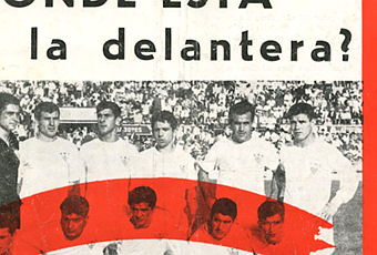 Aquí vemos la portada de un ejemplar de la revista Serva, datado a finales de 1965, haciendo crítica del equipo y tachando gráficamente a la delantera que había conseguido tan solo dos puntos de ocho.