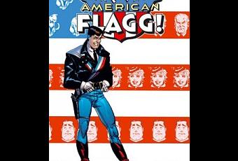 American Flagg! es una serie regular que, como todas las autorales, fue perdiendo fuelle con el tiempo, pero su comienzo fue explosivo. Este inicio es lo que contiene el tomo de Norma, 14 nº (y un breve especial posterior) que forman una primera historia tripartita con epílogo. La parte del león es, menos el color, obra de Chaykin, uno de los autores de cómic modernos estadounidenses más importantes. Se sitúa en un futuro cercano en el que Occidente se ha hundido por una catástrofe atómica de modo que su elite se ha trasladado a Marte. Aunque Chaykin no trata de presentar un futuro plausible, American Flagg! no es escapista. Todo lo contrario, es regeneracionista. American Flagg! es una obra comprometida con su tiempo, trata de colaborar en la reconstrucción de un EE.UU. roto por su caída en el pozo de los 70 (Nam y las crisis económica y política). El futuro que presenta es la exageración casi hasta la caricatura de las ideas sombrías que había en aquella época sobre este porque la intención de Chaykin es criticar aquel decadente presente y, sobre todo, a la derecha estadounidense (que, como vemos en el Tea Party, sale a la luz cuando su país está en crisis) por su demente y sesgada idea de lo que es la esencia de EE.UU. La obra apunta a la política de Reagan, el presidente que pensaba que volviendo a los 50 los problemas de su país se arreglarían. Chaykin cuenta la historia de como Reuben Flagg, un ranger, acomete la regeneración moral de un EE.UU. hundido recurriendo al imaginario de aquella década (la de su infancia), unos tiempos más éticos por sencillos, para criticar la visión estrecha, la mercantilización de la sociedad y el gusto por las armas y la violencia de esta pero sin caer en la complaciencia, en la deformación o en la ciega añoranza (como Reagan) pues ante todo el autor es un tipo rebelde, irónico y transgresor. Sus obras siempre son adultas porque son difíciles y sexuales sin melindres (bondage y trasvestismo). Esto y el cuestionamiento de la idea de lo que es la esencia de EE.UU. de la minoría estadounidense de ultraderecha (hombres blancos, protestantes, machistas, racistas y armados), no puede ser de otra forma pues Chaykin es judío, es lo que diferencia a American Flagg! del discurso pueril, conservador y pronvinciano de Reagan que se encuentra muy bien explicado en la filmografía ochentera de Stallone (sobre todo en Rambo III y Rocky IV) y Norris (sobre todo en las sagas Desaparecido en combate y Delta Force e Invasión USA; no las vean en sus casas).