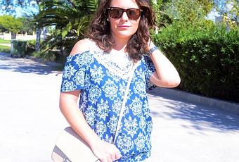 No es la típica camiseta de escote de barco con hombros al aire, sino que lleva mangas entreabiertas y lo mejor de todo el detalle de la pechera en crochet ¿no os parece preciosa? Os puedo asegurar que se ha llevado muchas miradas este verano.