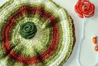 Ademas el pompon con forma de rosa también en crochet se puede quitar y convertirlo en un estupendo broche...