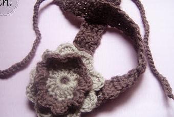 Para empezar, os enseño esta diadema para el pelo. La cinta mide 35cm. y la flor 7x7cm. Se puede utilizar en cualquier cabeza gracias a los extremos que tienen una longitud de unos 14cm. cada uno y sirven para atarla