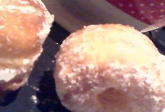 8. Bañamos las crocodonuts en el almíbar y los rebozamos en azúcar en polvo -hecho en casa, es decir que no este demasiado fino-