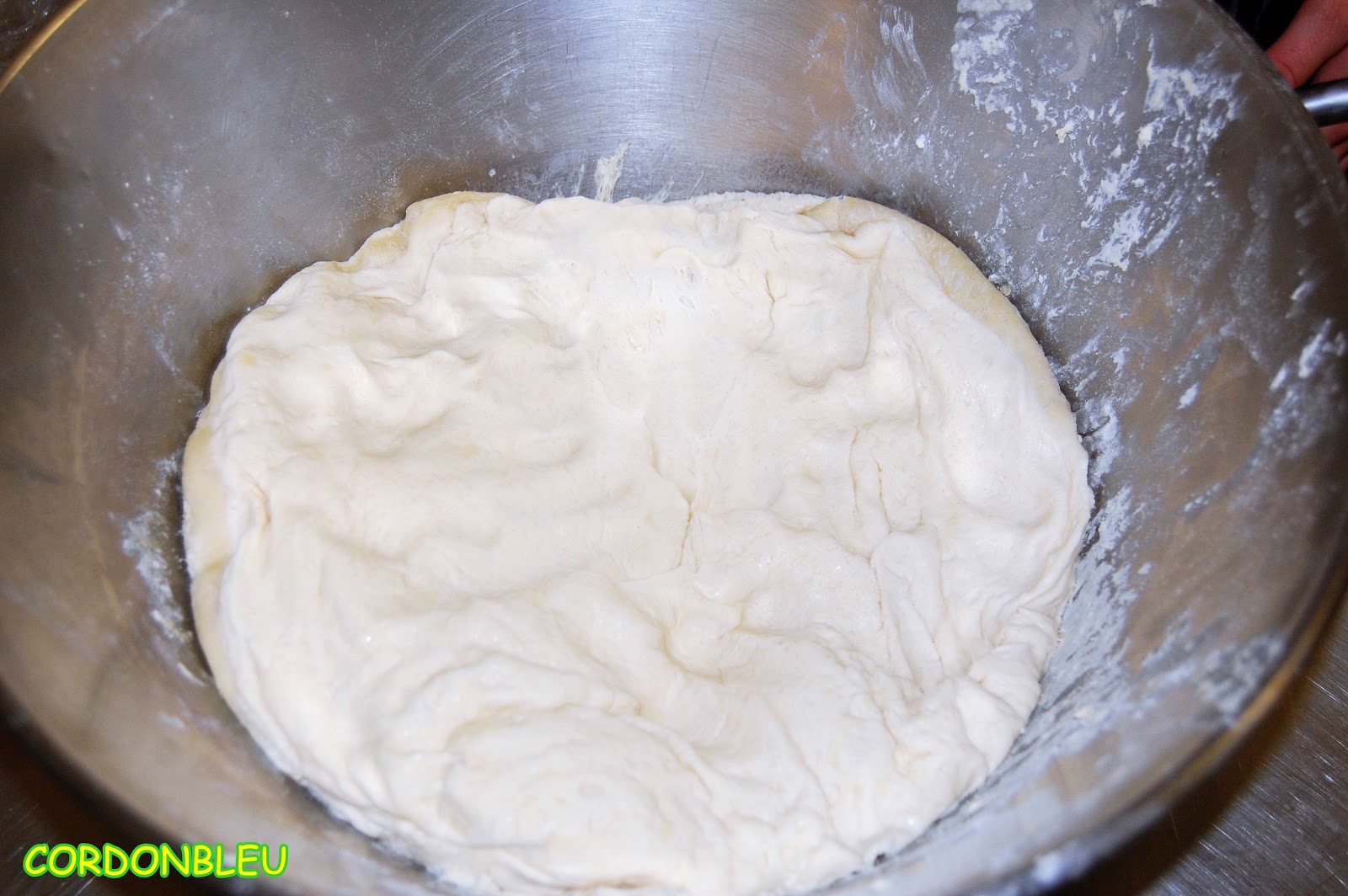 Se amasan todos los ingredientes menos la levadura, la grasa para los pliegues y un poquito de líquido que se guarda para disolver la levadura.