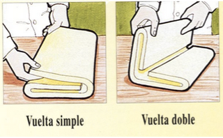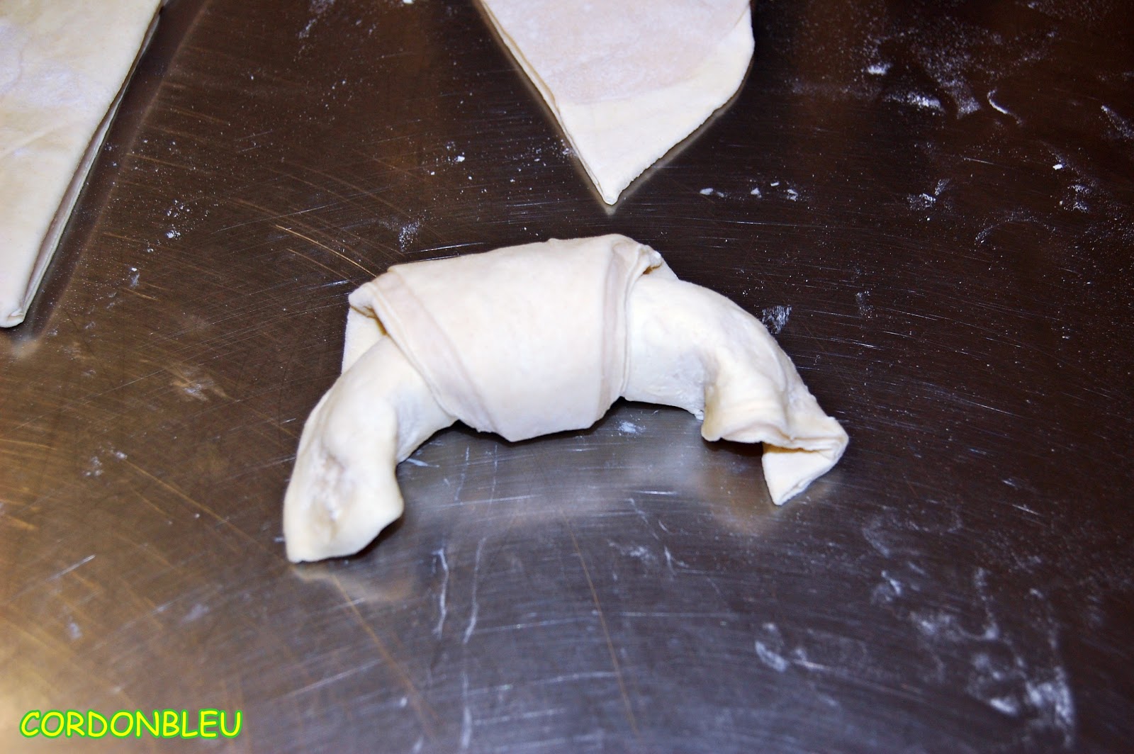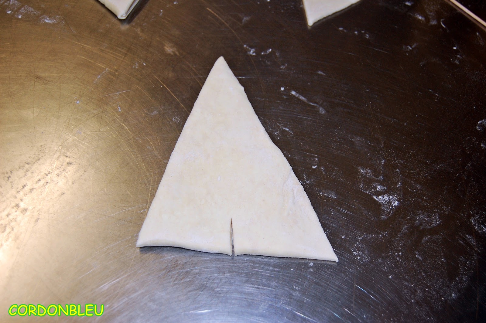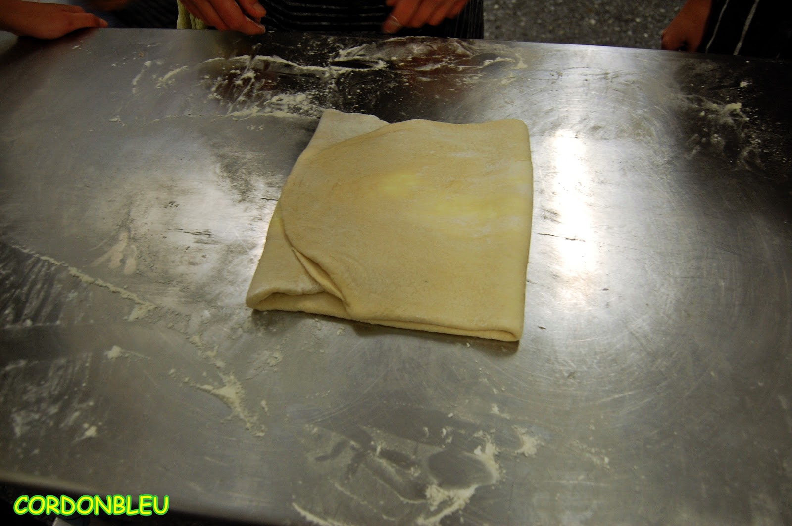 Para ello se hace una cruz en la masa y se estiran los pétalos con un rodillo dejando un bulto en el centro. Se pone la grasa en lo que sobresale y se cierra con lo pétalos hasta envolver la grasa.