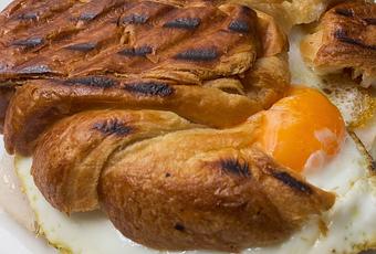 1 croissant3 lonchas de pavomantequilla2 lonchas de queso1 huevo