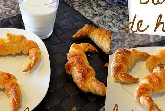 Ingredientes: 1 lamina de hojaldre fresca, 1 tableta de chocolate con leche, azúcar y aceite de oliva.