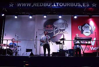 Continuamos en uno de los escenarios que más llamó la atención desde el principio y gracias también a su ubicación, más concurrido por el paso de la gente incluso ajena al festival que acababan allí un buen rato escuchando lo que se ofrecía, se trata del Redbull Tour Bus donde pudimos escuchar a Radiola, grupo llegados desde tierras murcianas que presentaban su trabajo “Miniserie”, rock y pop mezclados en su justa medida que hicieron el cóctel musical perfecto para degustar en esa acalorada tarde.