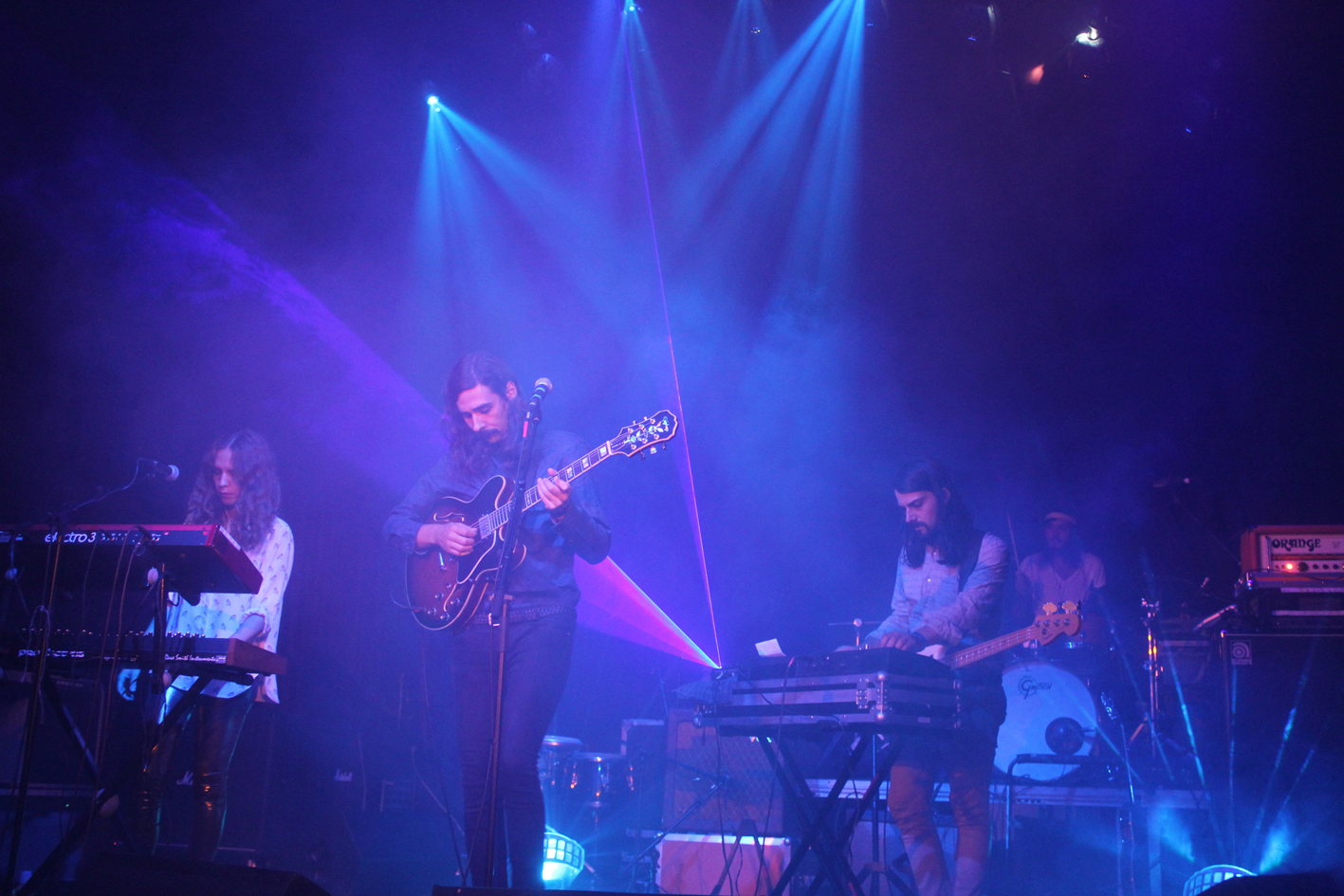 Nos volvimos para ver una de las bandas que más ha dado que hablar entre los asistentes y que gracias al boca-oreja consiguieron una expectación y lleno absoluto en su 2ª participación del día siguiente, Lorena Álvarez y su Banda Municipal nos maravilló por su desparpajo y gracia sobre las tablas a las que llegaron tras hacerse un paseíllo con bombo, tambor y guitarra desde el exterior del teatro hasta llegar dentro. Armados también con pandereta, flauta y botella de anís que corrió entre todos los asistentes salvo en cuando la necesitaban para tocar. Música folk tradicional desde Asturias con letras actuales que hicieron disfrutar a los asistente aún con la voz algo acatarrada y con esa guitarra la cual no hacía falta afinar porque según sus propias palabras “..afinar es de derechas”. Tras asistir y solo poder escuchar el último tema de Elle Belga, motivo por el cual no tengo mucho que comentar, pude ver a The Wheel and the Hammond, finalista el circuito Pop Rock Joven de Andalucía, y eso es lo que ofrecieron, al estilo británico, buenas guitarras y melodías vocales.