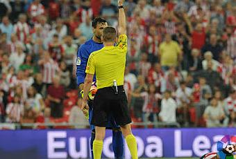 Sirigu vio la roja directa por agredir al delantero Aduriz.