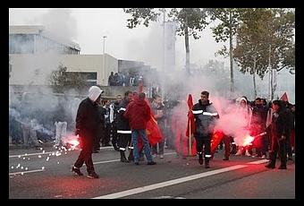 Y sí. Ha habido coches incendiados, contenedores en llamas, multitud de cristales rotos y varias de las tiendas de la Rue Victor Hugo (una de las más exclusivas de Lyon) han sido saqueadas. No estoy de acuerdo con ello. No es el método. Desgraciadamente, al final, eso es lo que sale en el telediario, lo que gana protagonismo. Los manifestantes han tomados las calles durante la mañana y los antidisturbios han colonizado Lyon durante la tarde.