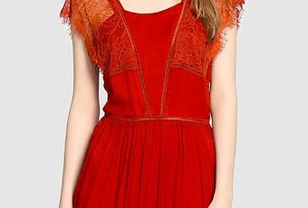 El primer vestido en el que me fijé y que me encantó fue este vestido rojo de encaje de Naf Naf. El problema es que esta firma no hace tallas grandes, y además solo es hasta la talla L o 42. Una pena y lo que significa es que nosotras no somos su público objetivo.