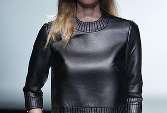 Martín Lamothe presentó su colecciónCHANCE, de la mano de Elena Martín. Está inspirada en el destino, el azar, el tarot y todo el mundo que rodea a estas creencias. Destacamos sus piezas en cuero confeccionadas con gran perfección, como este conjunto de sudadera y falda.