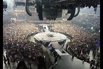Y la verdad es que impresiona llegar al Palacio de Los Deportes de Madrid y ver la plataforma montada en el centro del escenario con miles de personas alrededor ansiando ver a Matt Bellamy y los suyos, algo con lo que se te dispara la adrenalina y las ganas de escuchar música aunque no seas un fan absoluto de la banda, incluso aunque haga tiempo que no les oigas.