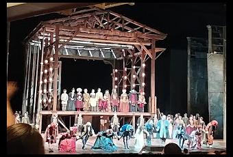 La puesta en escena era con trajes de época, con un escenario elevado que iba girando en función de la ambientación elegida, lo que encajaba muy bien con la narrativa.