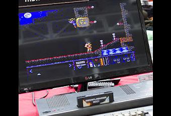 No faltó tampoco a la cita ‘Sputnik World’, con Rulas Internacional, Burros del Soft y todos esos sellos que engloban la prolífica escena de Commodore, particularmente del C64. Para la ocasión pudimos encontrar ediciones físicas de algunos juegos de su catálogo, como ‘Luna 3’, ‘Laberinto’ o ‘Robotland’. Manuel Gómez, de Kabuto Factory, presentó también en RetroMadrid el que va a ser el último juego del conocido sello de la escena retro española: ‘Raw Battle’ es una suerte de juego de lucha a lo ‘Kung Fu Master’ y está disponible tanto para Commodore 64 como para Spectrum. Divertido fue ver en un monitor a nuestro amigo Igor Errazking, convertido en una especie de actor virtual e invitando a que los asistentes participasen en la ‘Seuck Spanish Compo y Olé’, una competición que gira en torno a la conocida herramienta de creación de matamarcianos para usuarios de C64, Amiga, Atari ST o Windows. A la cita tampoco faltaron ‘All Your Base Society’, que mezclaron aparatos de otras marcas, amén de una estupenda Commodore 64 Game System, con un colorido Turbo Chamaleon 64 conectado. A los mandos de este ordenador ‘consolizado’, un joven jugador no podía parar de probar y probar más juegos. También los amigos de ‘Explora Commodore’ tenían un pequeño apartado donde promocionar los productos de la marca y de paso también la tercera edición del evento que se celebrará en Barcelona el próximo 13 de mayo. En RetroManiac publicamos una entrevista con sus organizadores hace unas semanas.