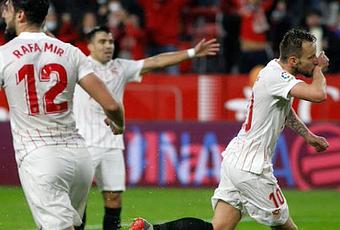 Respondió el Sevilla con una centro al área de Montiel que remató muy bien Ocampos para hacer la igualada.