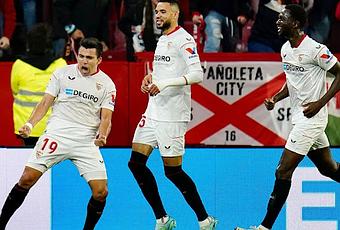 En la primera parte, Marcos Acuña adelantó al Sevilla con un gran remate de cabeza a centro de Rakitic.