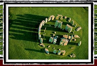 ...Stonehenge está compuesto por grandes bloques de piedra distribuidos en cuatro circunferencias concéntricas. La exterior, de treinta metros de diámetro, está formada por grandes piedras rectangulares de arenisca que, originalmente, estaban coronadas por dinteles, también de piedra, quedando hoy en día sólo siete en su sitio...