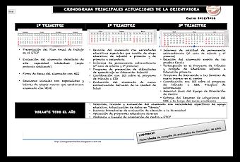 Son muchas las actuaciones que los profesionales del EOE desarrollan a lo largo de un curso académico, pudiendo solaparse algunas de ellas en un mismo periodo. A través del siguiente cronograma he intentado temporalizar las principales actividades que desarrollo en mis centros escolares.