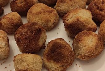Con la ayuda de dos cucharas dar la forma o también hacerlas esféricas, con ayuda de las manos.
