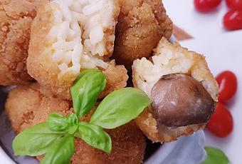 Croquetas de arroz,ingredientes:Arroz con champiñones (ver receta)1 huevo batido.