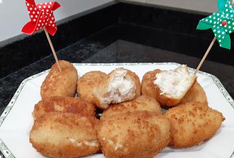 - Cuando esté bien fría ya podremos hacer las croquetas, haremos la forma con dos cucharas,cuando tengamos todas las croquetas hechas las pasamos por huevo batido y pan rallado y las freímos con abundante aceite bien caliente.Por último las escurrimos en un plato sobre papel absorbente.